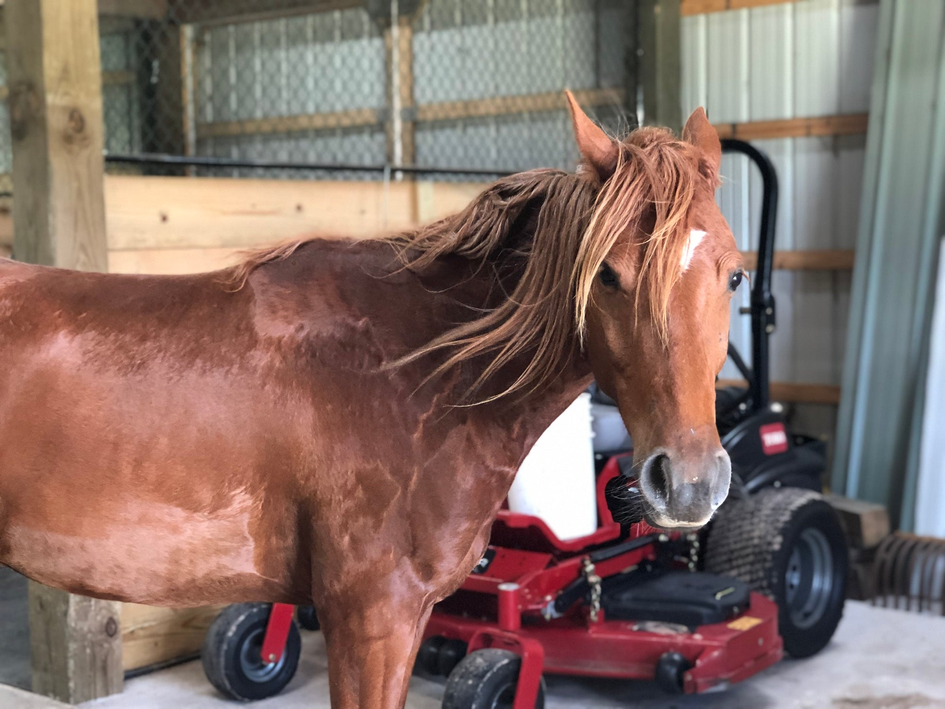 This is Willie. He is about 5 years old. He is a Missouri Foxtrotter. He is super sweet but he is treated by the herd as the low man. I chose him because he is so delicate and sweet and instantly imprinted with my daughter.