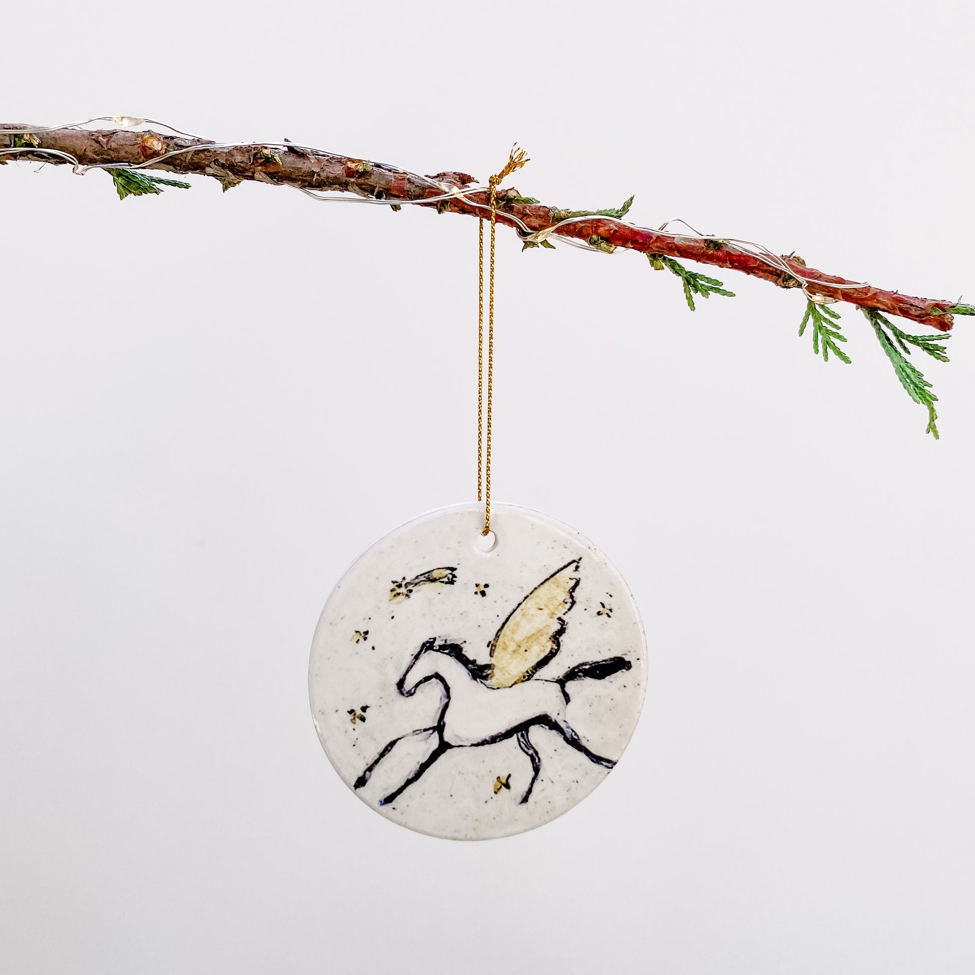 This is a little bundle of 3 printed ceramic ornaments (3” inches diameter).