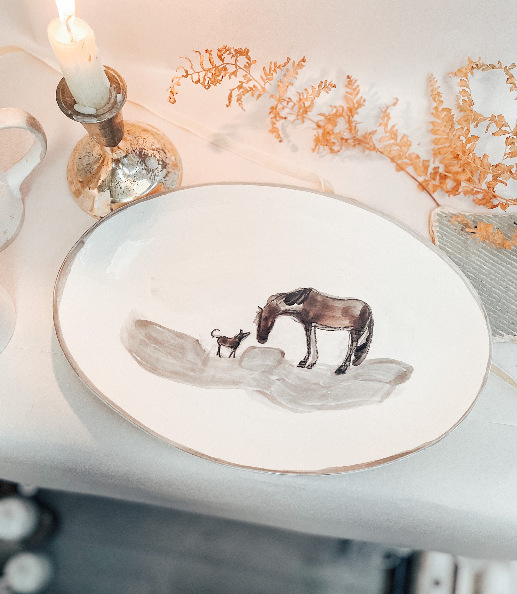 Serve in style with this ceramic platter, carrying Bettina’s original artwork across its generous surface.