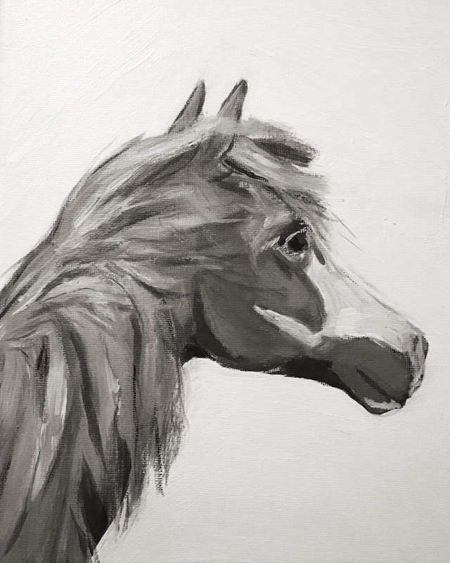 Oooohhh I LOVED painting Fresca! Because some great things come in small packages. Look at that blaze! And those sweet, positive vibes. How cute is this little mare? She is a sea horse, a rockstar jumper, and a powerhouse of personality packed into 12.1 & 3/4 hands. She’s weird, opinionated, full of fire. She is talented, beautiful & kind. This mare has been known to gallop beaches, take ribbons, and wander the wilderness. So fun!