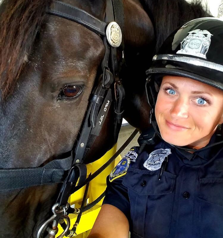 Miss Jill is a mounted Percheron, mounted police horse. A stunning, black mare who just can’t help but be beautiful. A gentle soul, who helped her mom ring in Jill’s great-grandpa’s 91st birthday with cheer. A heartwarmer, and a vegetarian. This beautiful mare is all we could ever dream and hope for in an equine companion, just look at that soft eye.