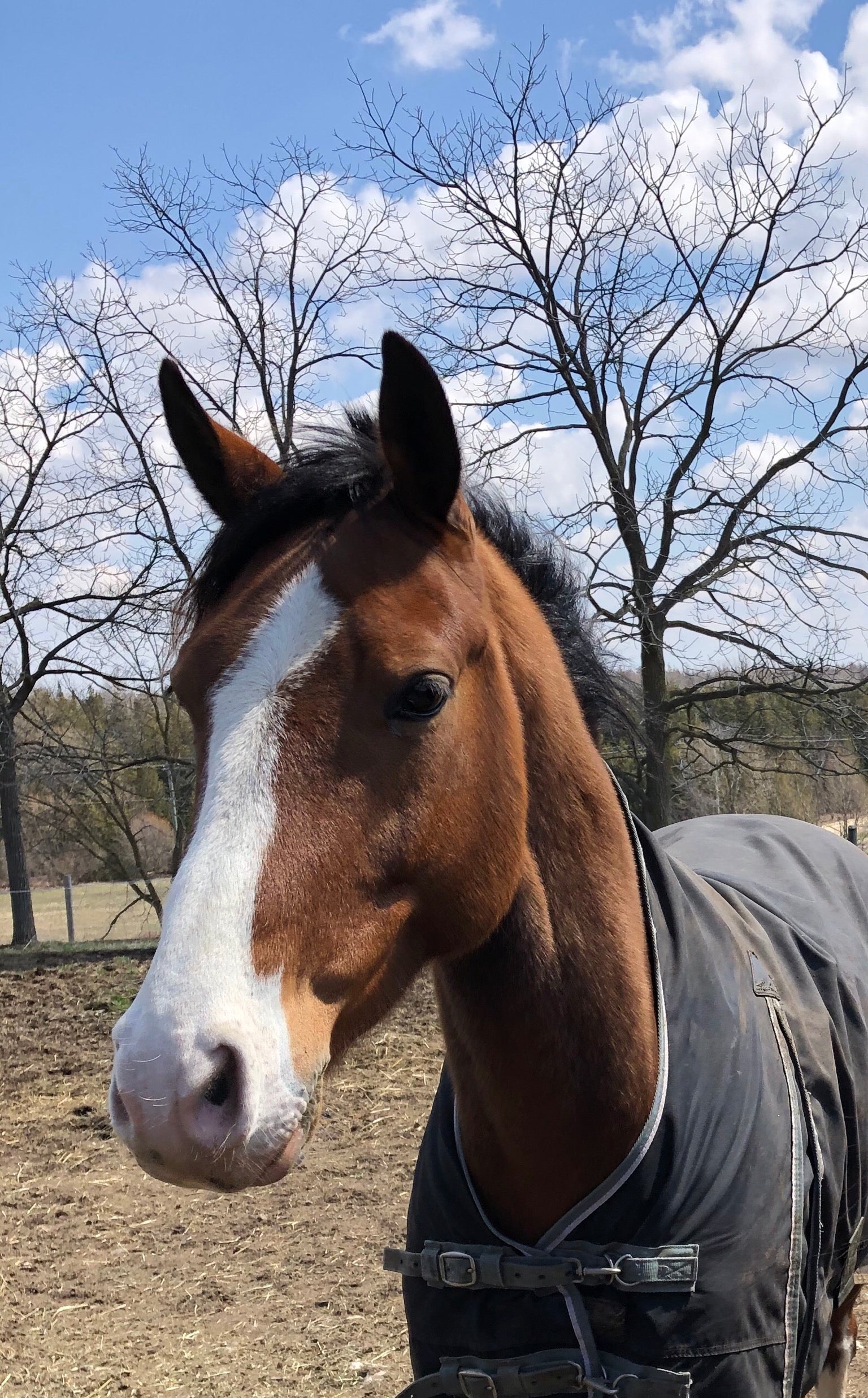 Chappie is five and we have owned him for just over a year. He managed to injure himself the week we bought him, so we spent almost a full year waiting to ride him again. He’s super snuggly and always the first horse to nicker and race to the gate to say “hi” (sometimes too fast for his moms’ likings 😅). He loves to give kisses and eat bananas, and is very happy to be a working boy again.