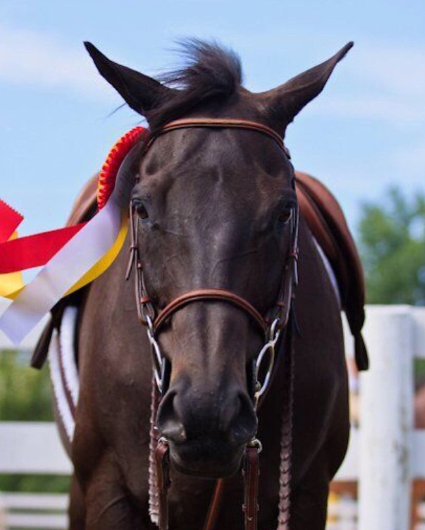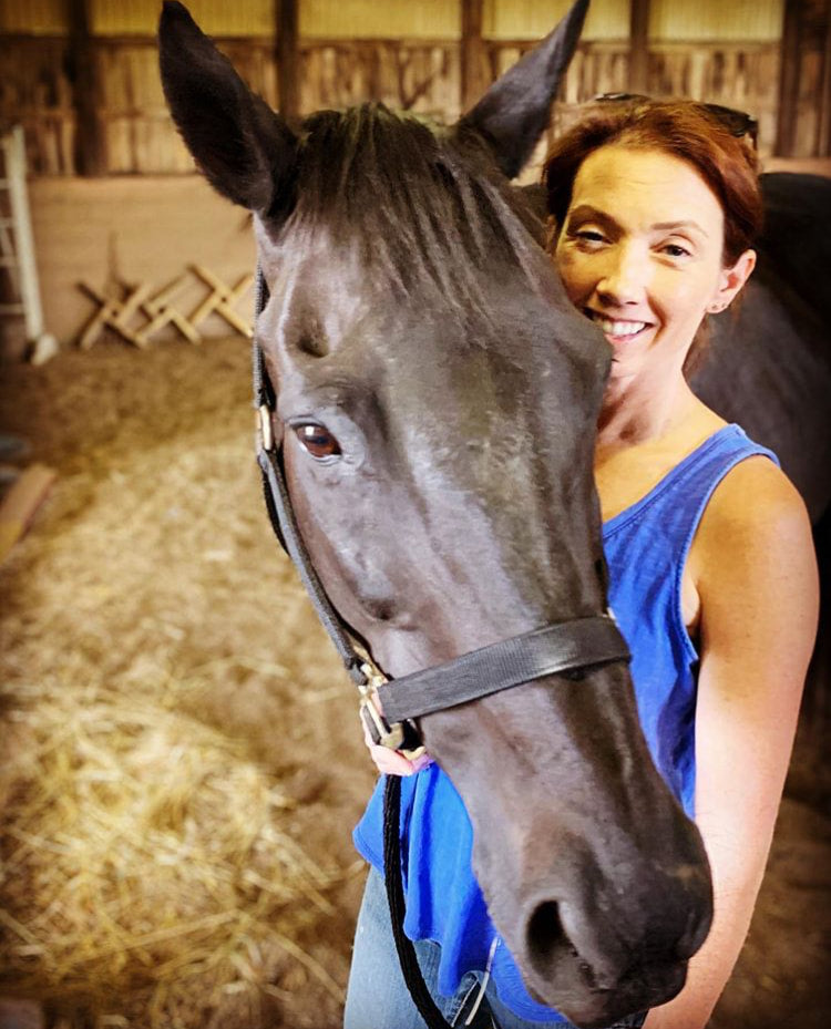 Sammy is a 21 year old off the track thoroughbred. I have had him for 15 years. He is a seal brown gelding, but more often looks completely black when the sun hasn't brought out the brown of his nose :-) I like to think of him as a quiet hearted soul with a sense of humor and touch of stubbornness. He is a complete overthinker when it comes to working. During our lessons he always thinks he knows what's coming next. At 21 years old, he still likes to take off at a canter or gallop thinking if he just does everything faster, the lesson will be over faster. Walk-Trot-Canter-Done, right?