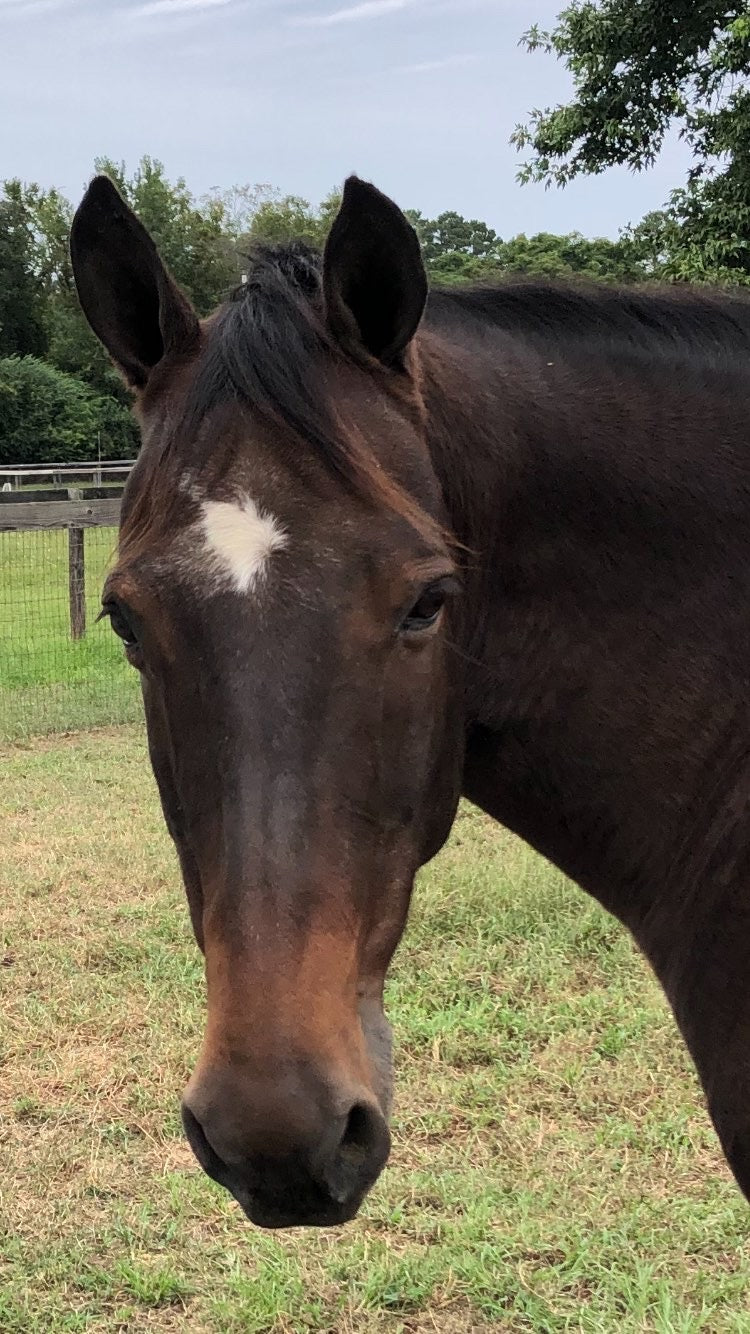 Orbit is one of the sweetest, kindest souls you’ll ever meet. A dear friend let me ride him when I lost my once in a lifetime show horse. We’ve been inseparable ever since. He learned to foxhunt at 17 years of age. Now that he is 26, we enjoy hunting for sunrises and sunsets. I will forever be grateful for Orbit’s patience. The marking on his face looks like the state of South Carolina.