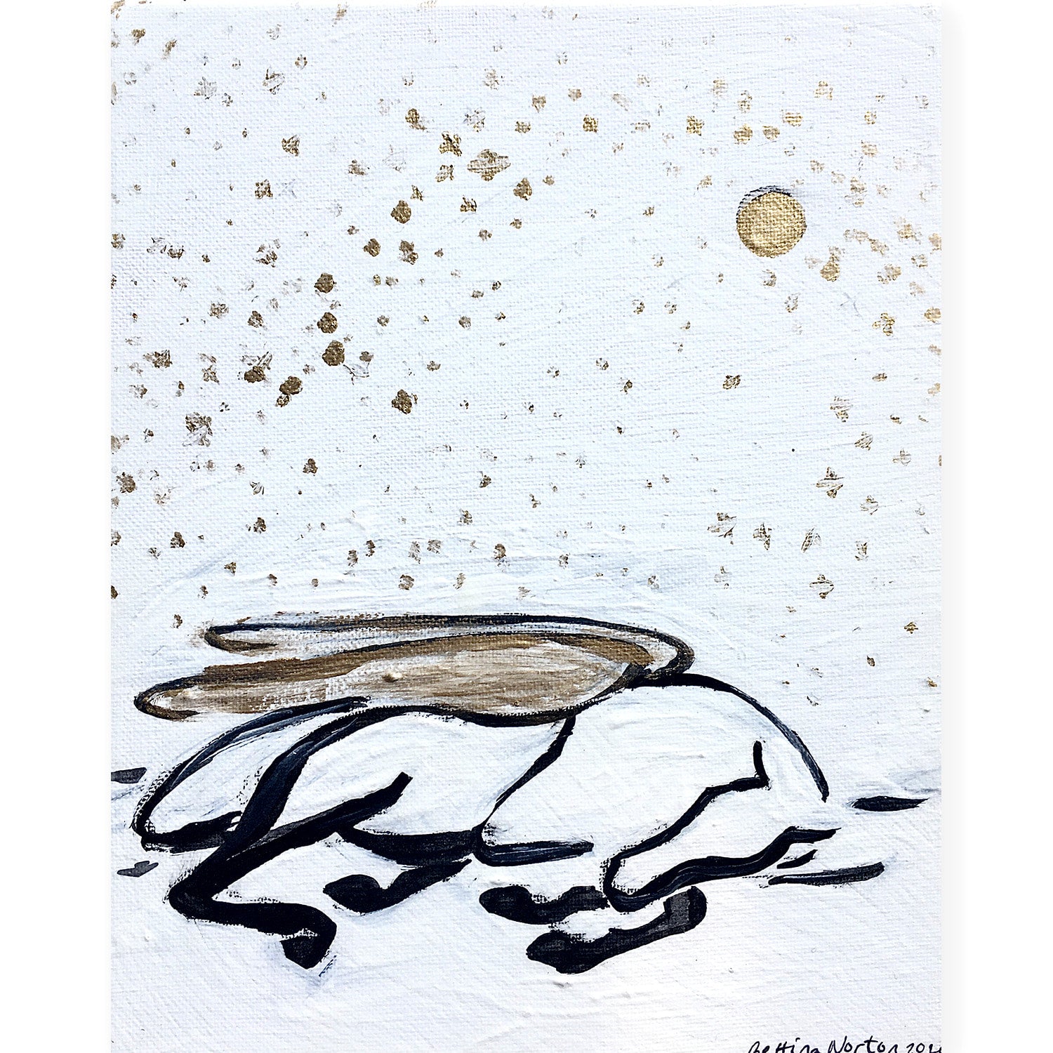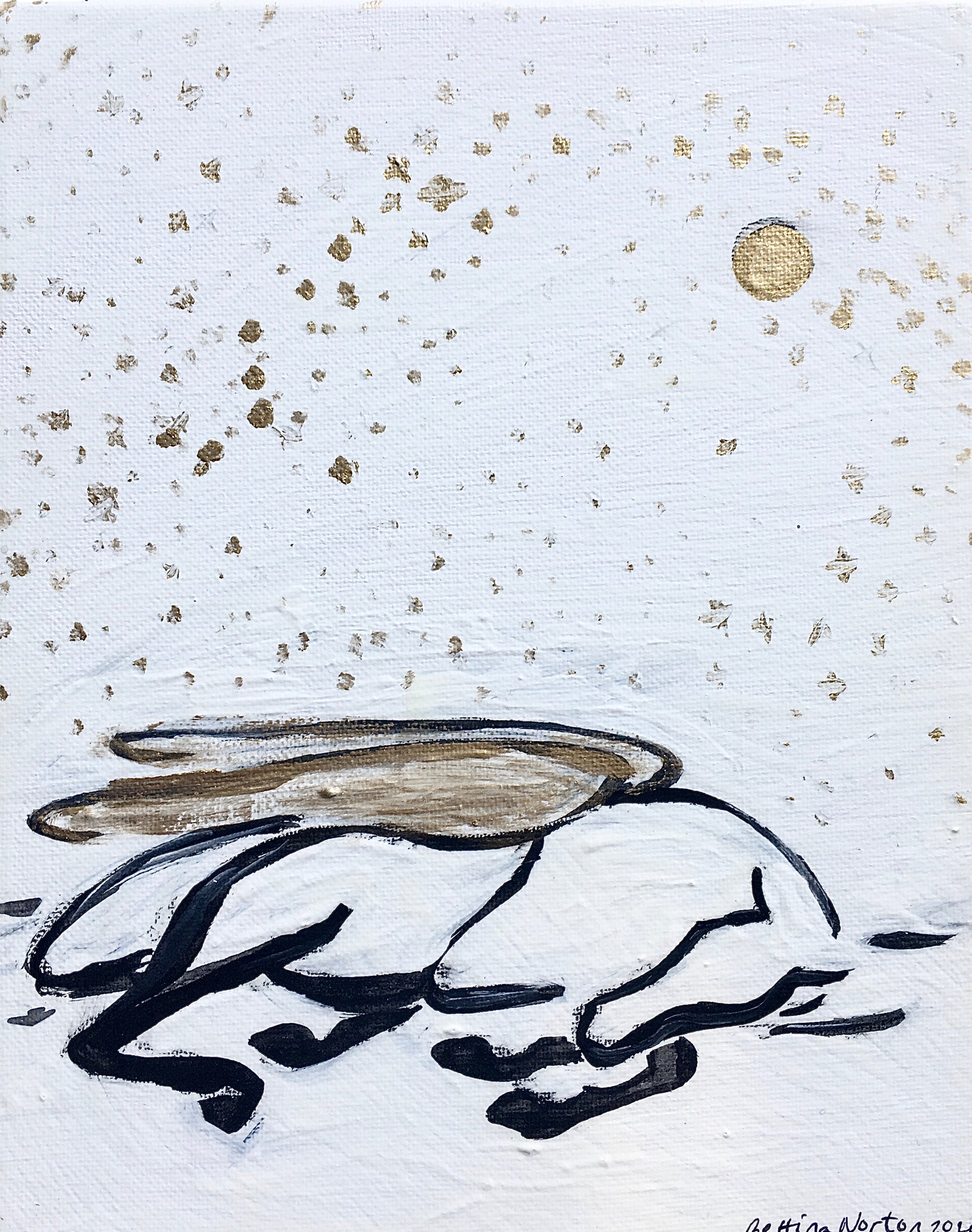- Acrylic, ink, gold leaf and ink under varnish, beautiful for years to come.