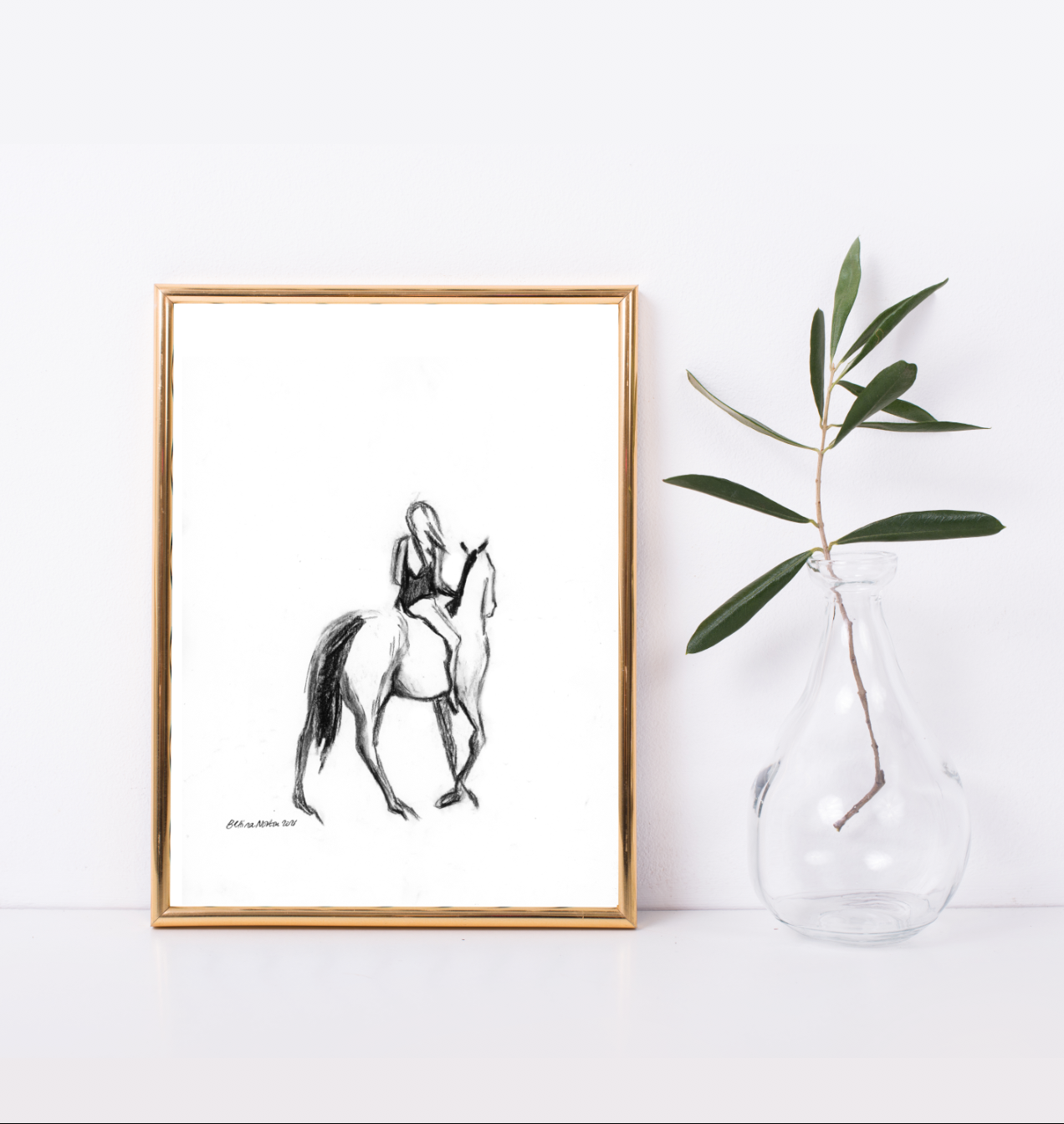 This is a part of the Horse Girl Series. A collection that features connected riders, simple lines, and the gentle relationship that makes our bond with horses so special.