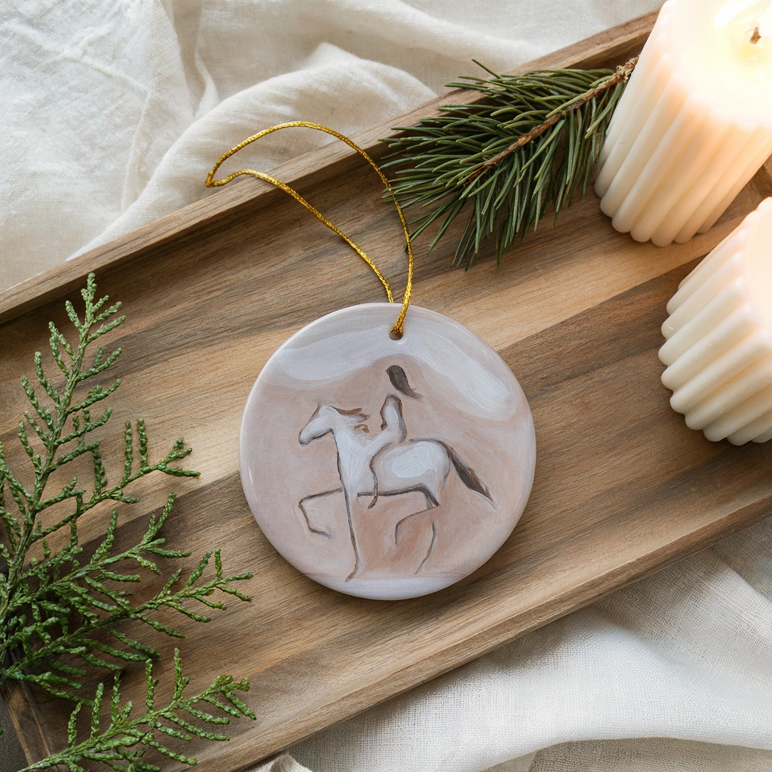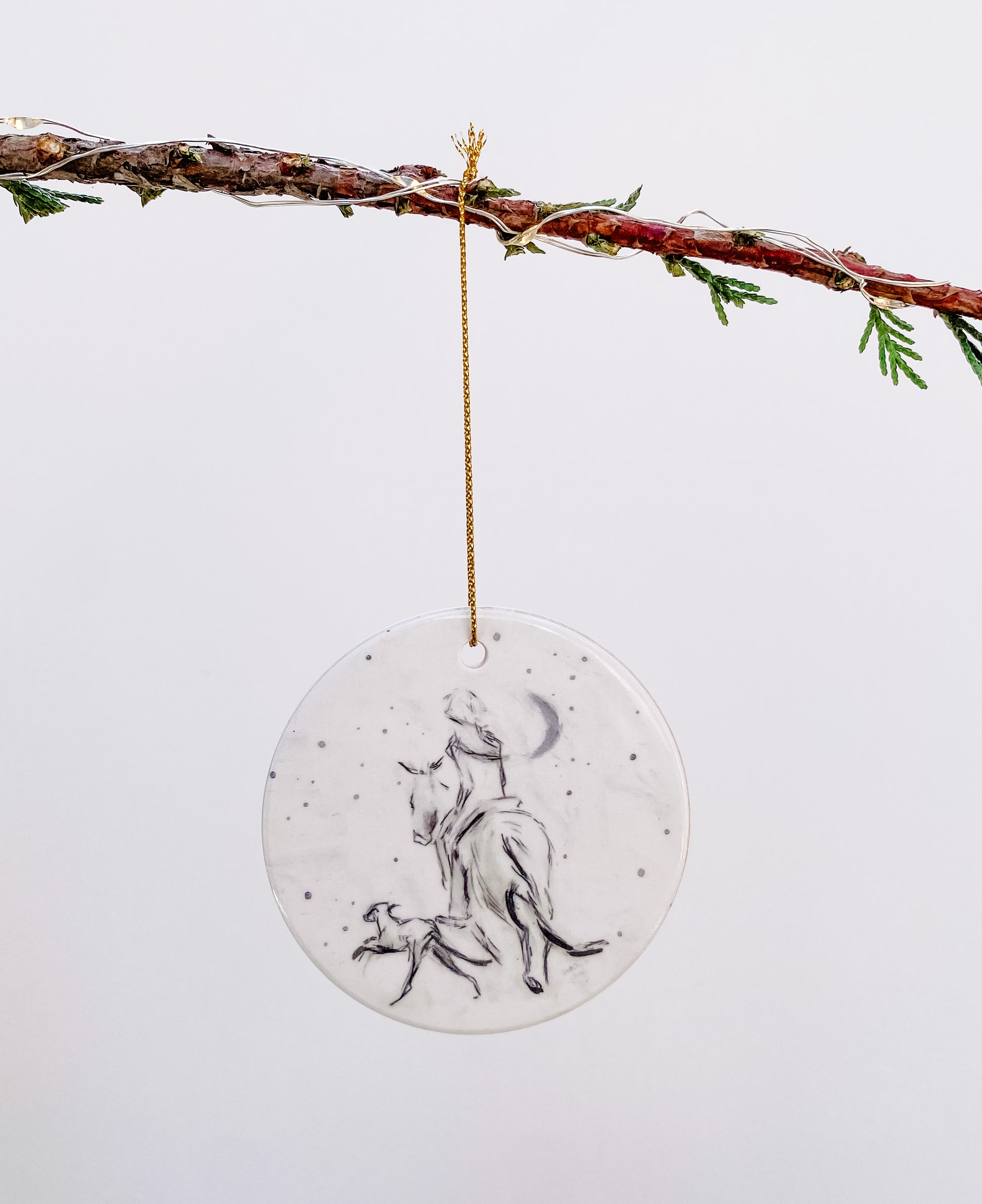This is a little bundle of 3 printed ceramic ornaments (3” inches diameter).