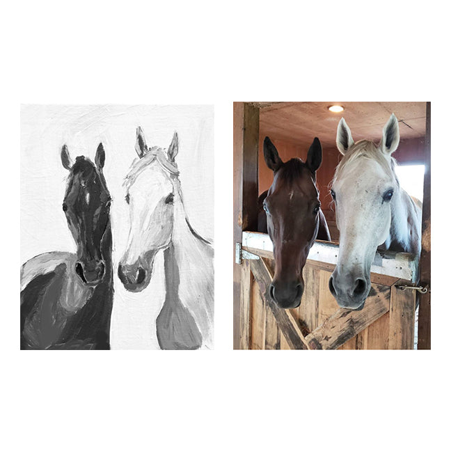 Please send me an email with mages of your horses as soon as you've completed purchase here. Once you put a 50% deposit on your piece, we'll start the process! As soon as I have photos from you, I'll get back to you and we'll begin!