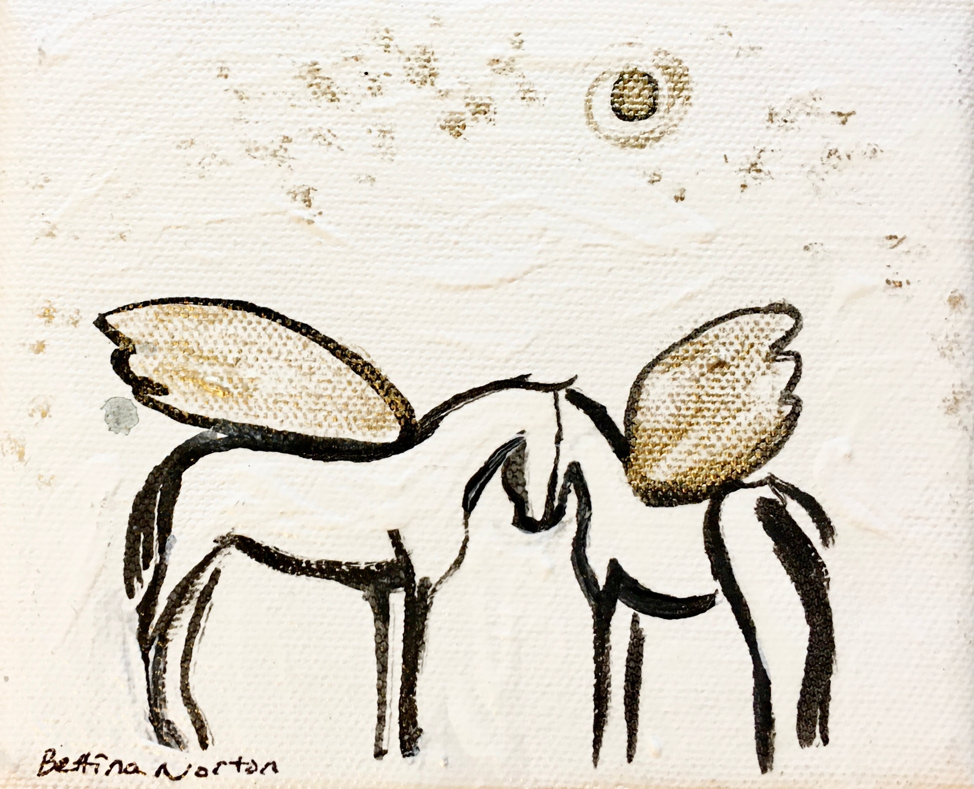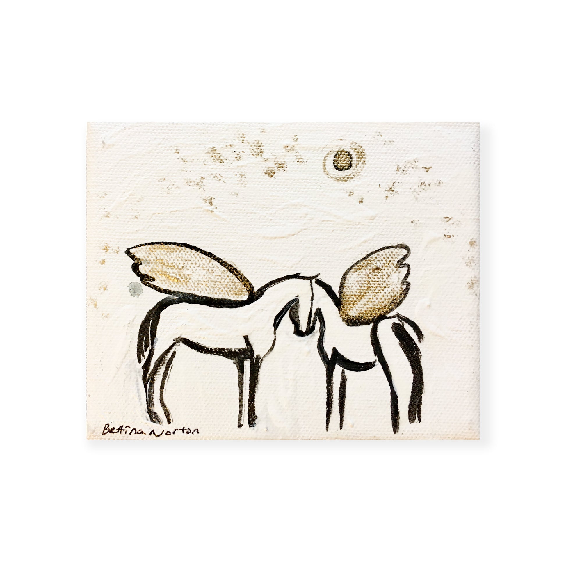 - Acrylic, ink, gold leaf and ink under varnish, beautiful for years to come.