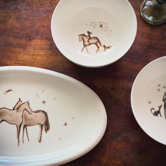 Crafted from ceramic porcelain, it features Bettina’s original painting “Fast Rider” for a touch of equestrian charm and lots of stars set in a starry night.
