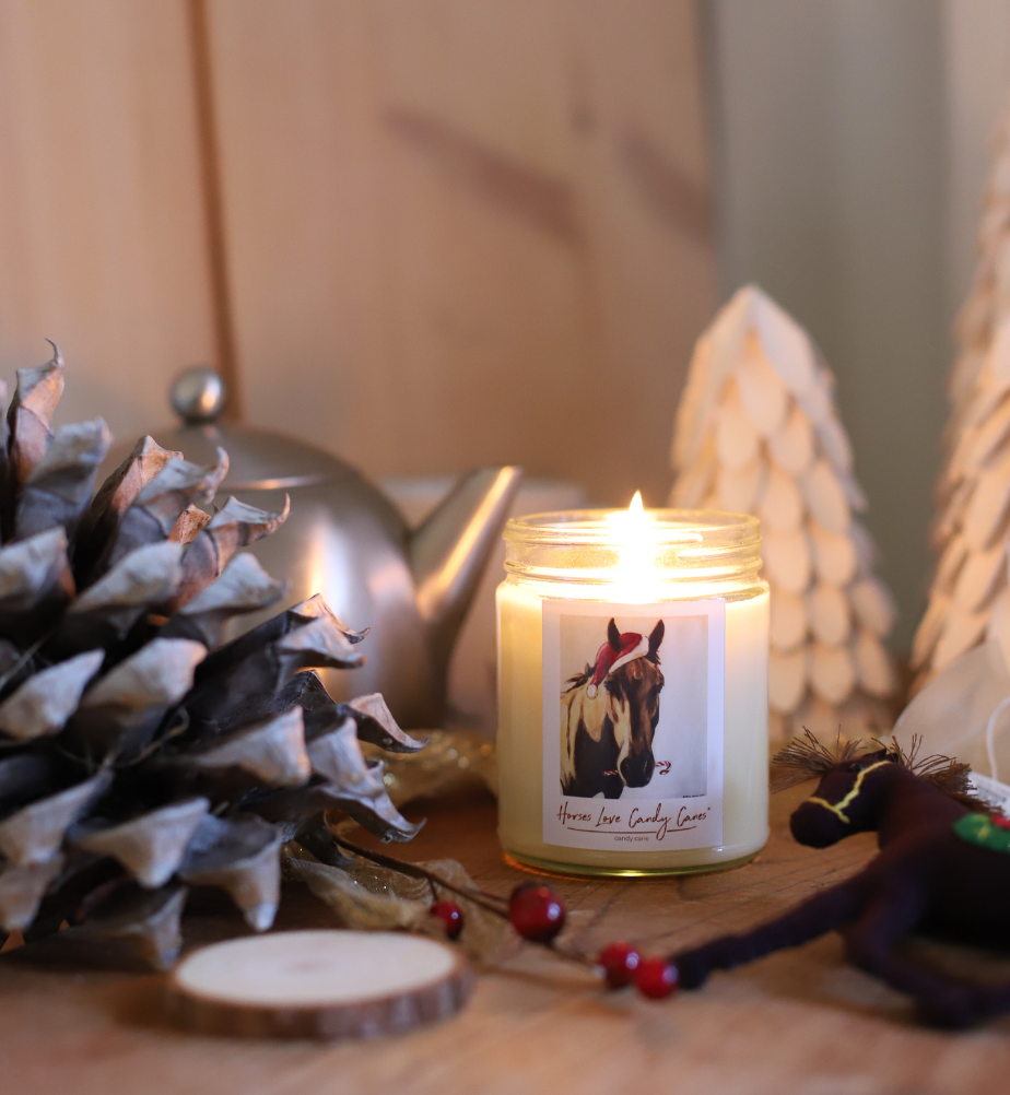 Remember how horses love peppermint candy? Well, I thought I'd create a candle to bring that memory to life. This candle takes us back to moments in the barn, stomping hooves, crinkly wrappers and happy ponies.