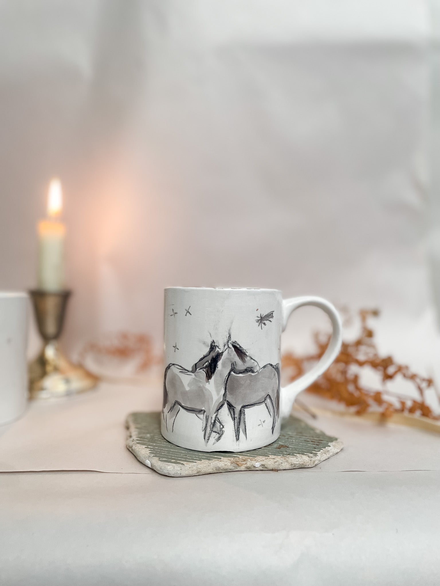Each sip brings these horses to life as they move gracefully across through the artwork and bring elegance to your day.
