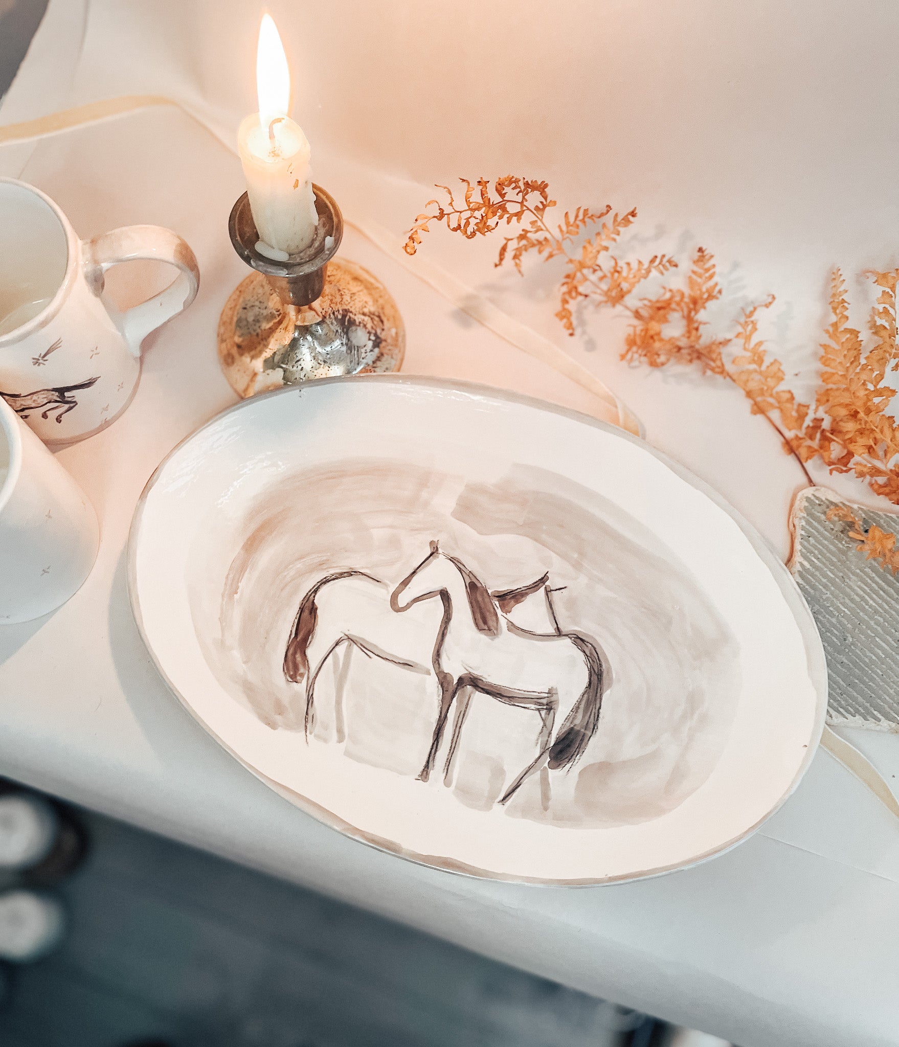 Serve in style with this ceramic platter, carrying Bettina’s original artwork across its generous surface.