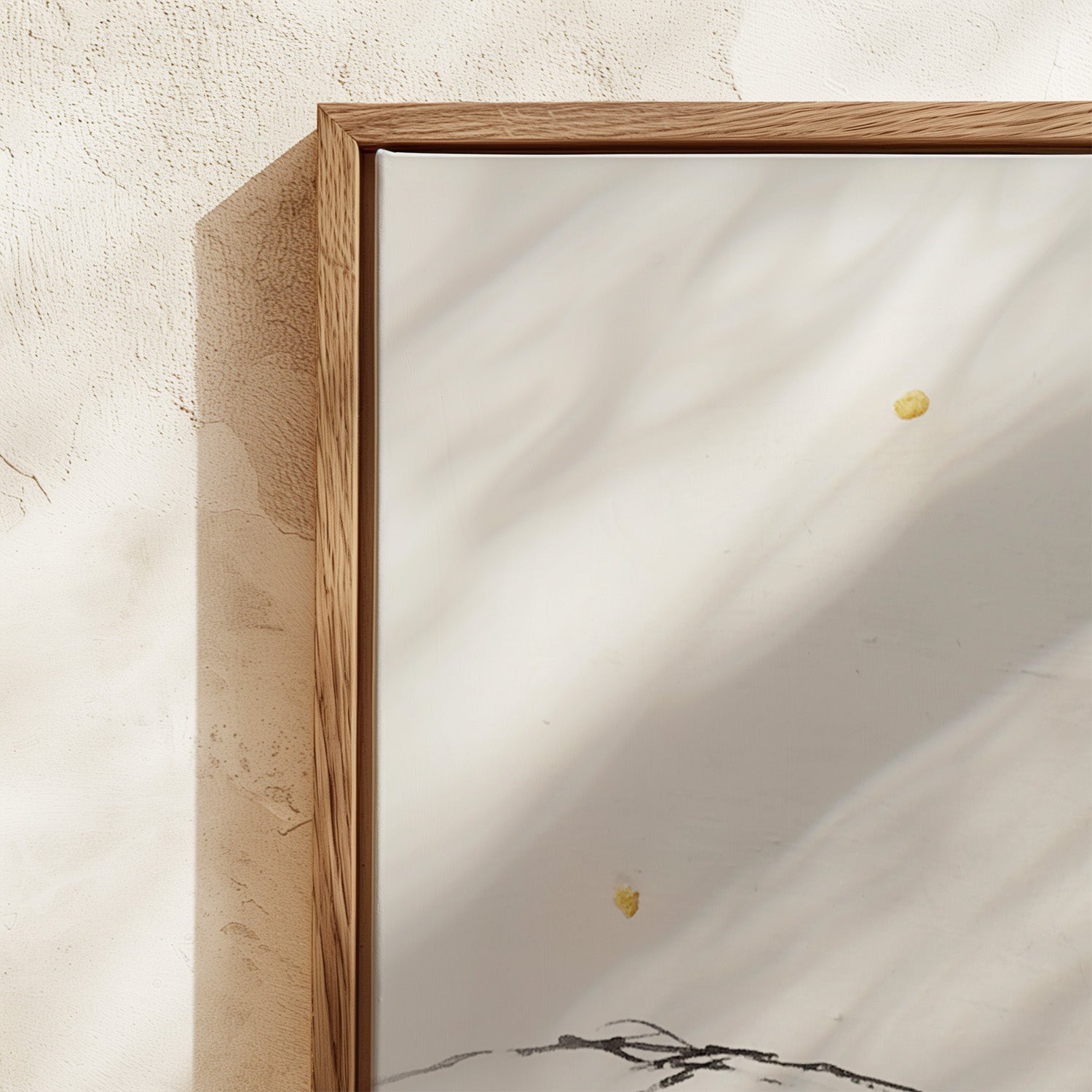 - Finished in a real wood frame. Frame color: natural wood, light Scandinavian oak tone. Frame adds an additional 1.25" border around the mat.