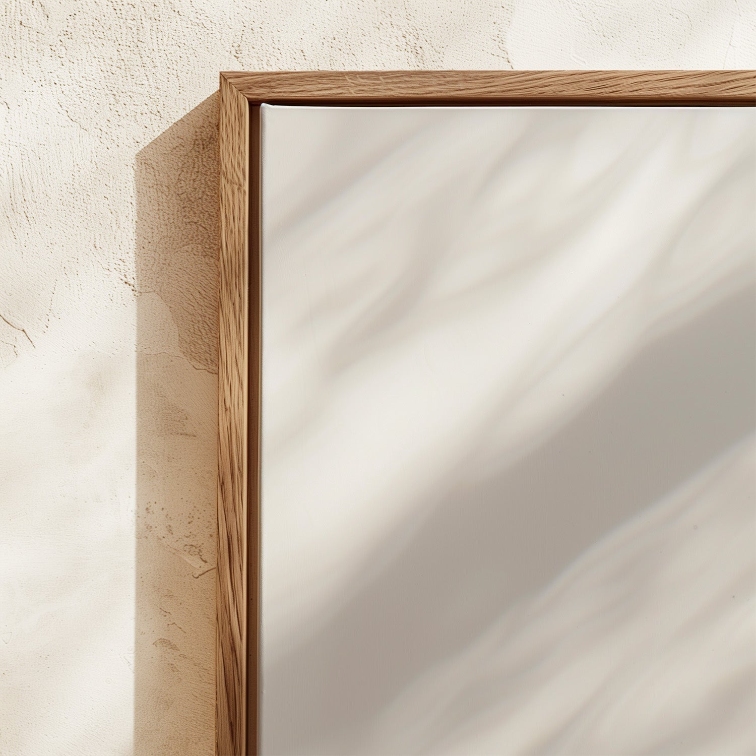 - Finished in a real wood frame. Frame color: natural wood, light Scandinavian oak tone. Frame adds an additional 1.25" border around the mat.