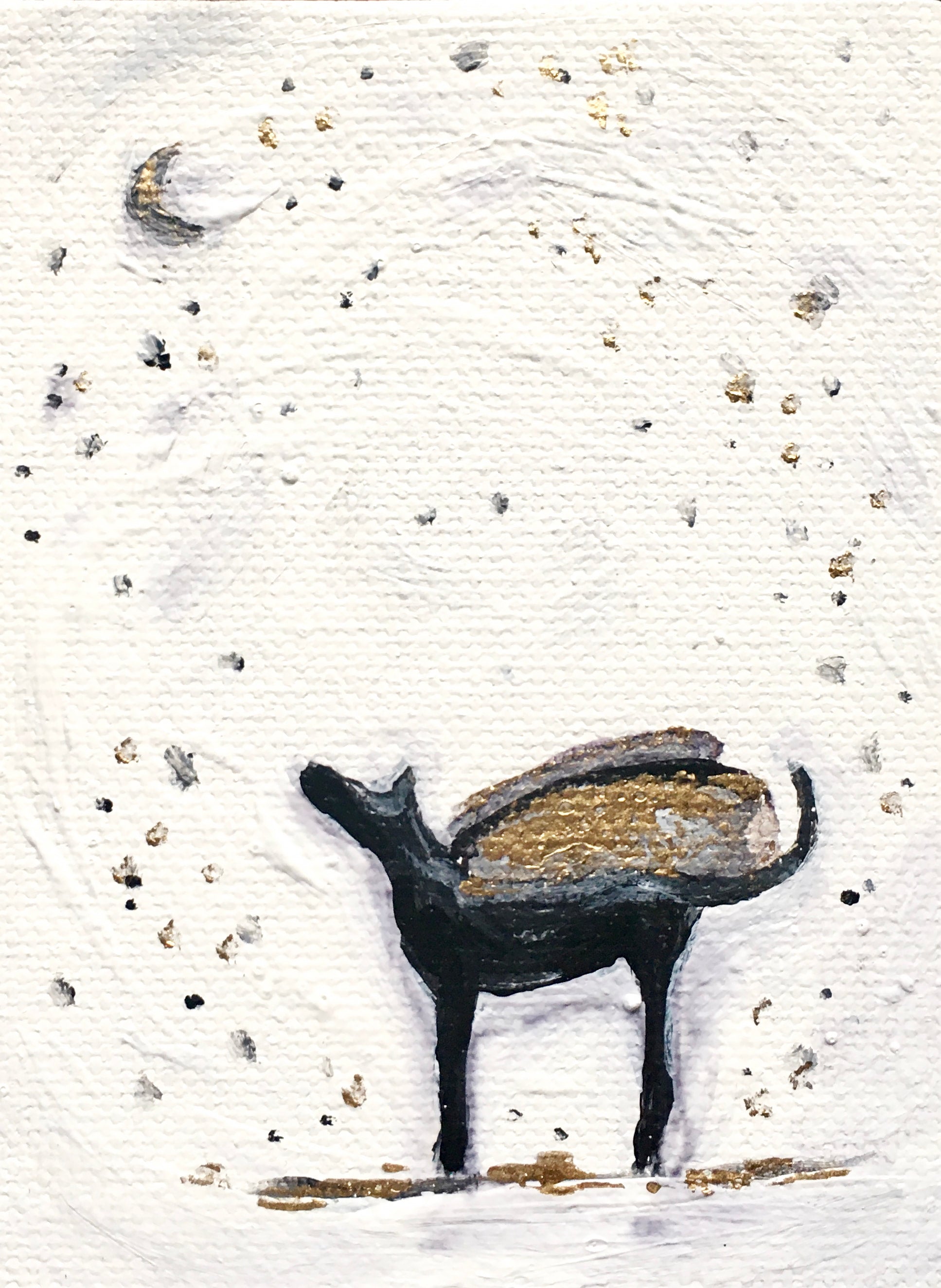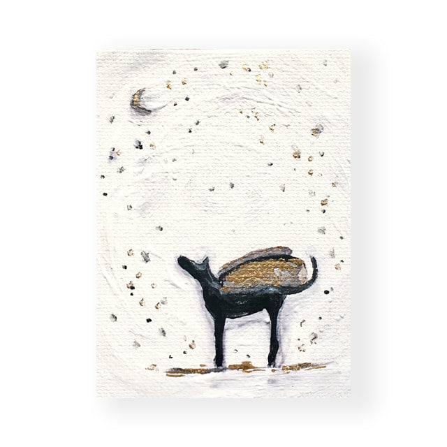 - Acrylic, ink, gold leaf and ink under varnish, beautiful for years to come.