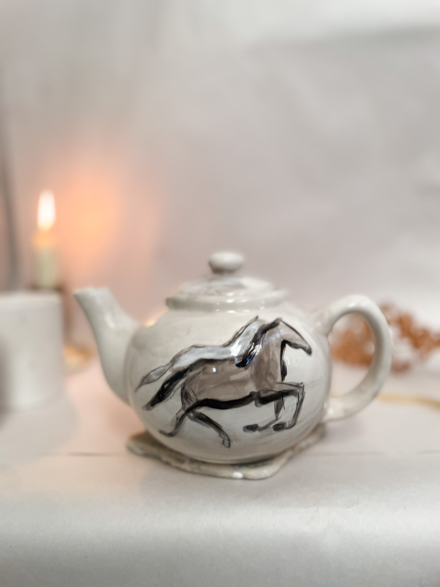 Pour a little beauty into your day with this hand-crafted ceramic teapot featuring original artwork by Bettina.