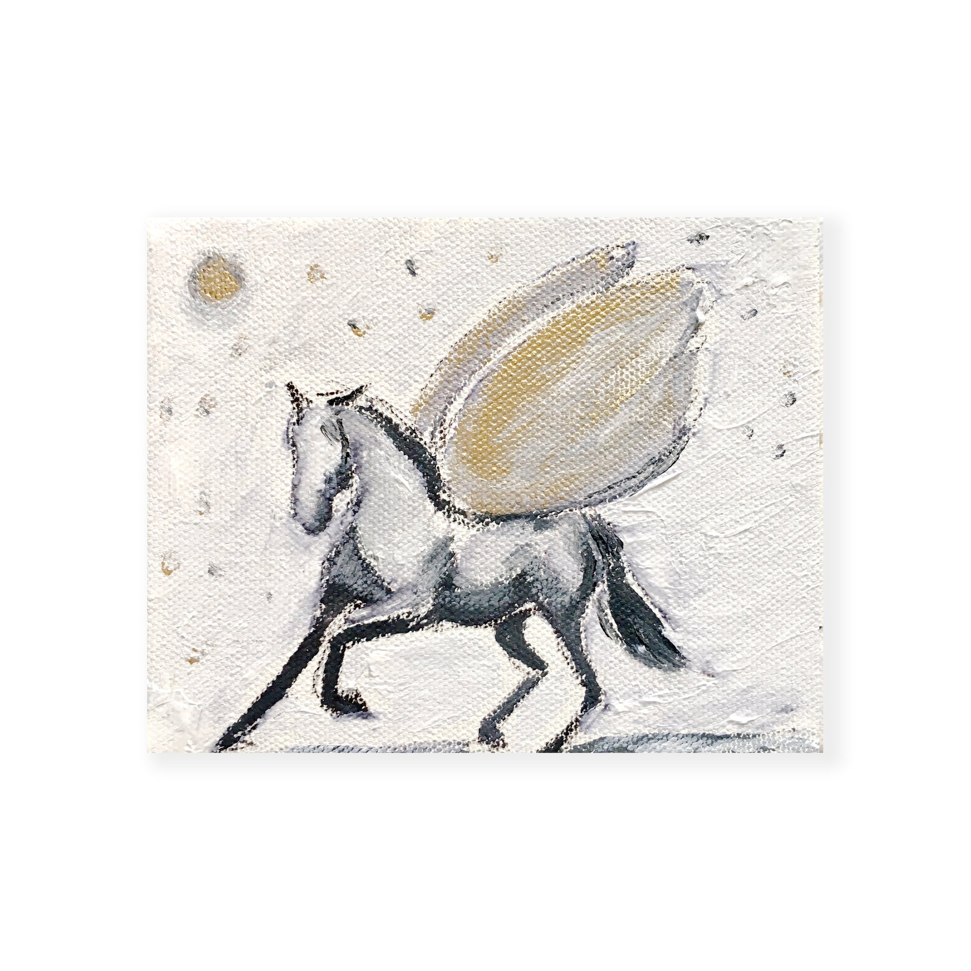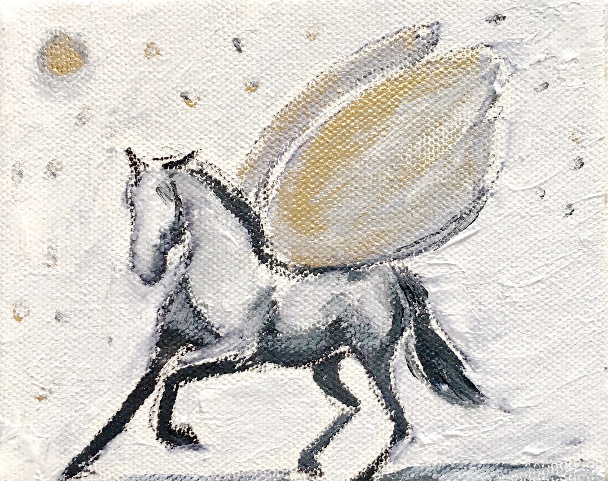 - Acrylic, ink, gold leaf and ink under varnish, beautiful for years to come.