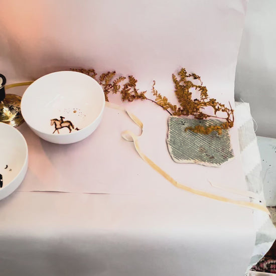 Crafted from ceramic porcelain, it features Bettina’s original painting “Together Again” for a touch of equestrian charm and lots of stars set in a starry night.