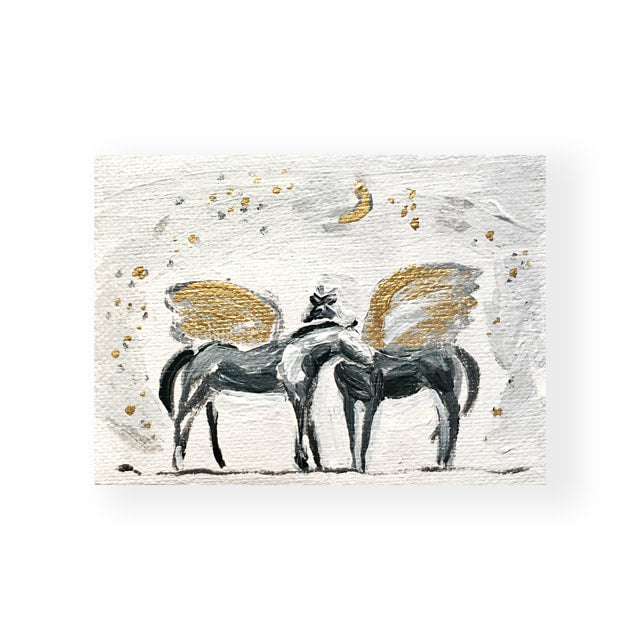 - Acrylic, ink, gold leaf and ink under varnish, beautiful for years to come.